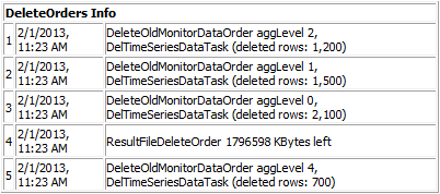 The DeleteOrders Info section is only visible if data storage reduction processes are currently running. It displays the running DataDelete jobs, where each DataDelete job actually creates a job per project plus an additional job for the result files.