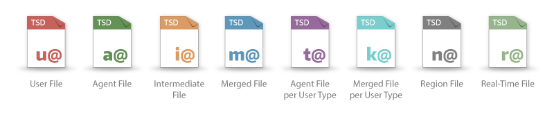 | Merged File per User Type | k@<...>.tsd | A merged file per user type contains the time series data from one user type of all agents. It is generated on the controller by merging the agent files with the same user type together. |