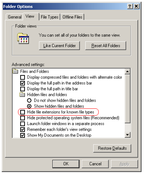 Ensure that the setting Hide file extensions for known file types is not checked in the Windows Explorer Folder Options dialog box, as shown in the screenshot below. Otherwise Windows may show a file name such as Rule.xrl when the file name is actually Rule.xrl.txt.