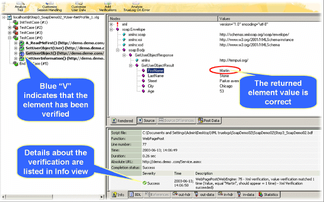 7. Click OK to add the function to your test script. XML attribute verification is identical to XML element verification, except that an attribute name must also be specified.