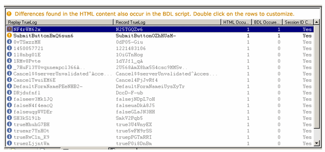 Right-click any rows that show differences between the recorded TrueLog and the replay TrueLog that also occur in the script