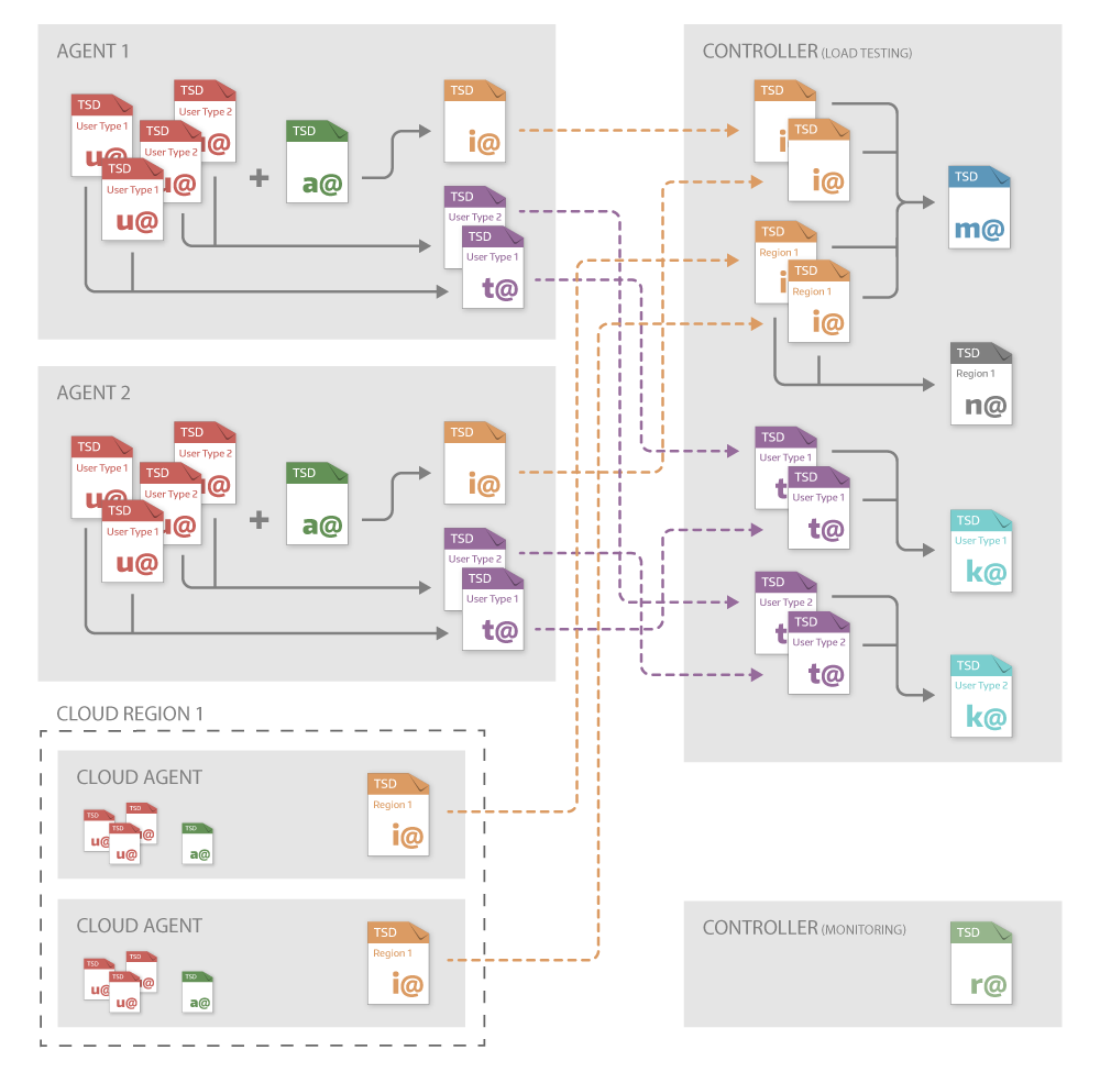 Agent File per User Type t@<...>.tsd An agent file per user type contains the time series data from one user type of one agent. Do not confuse it with a user file. Several virtual users can be assigned to one user type. Therefore, the agent file per user type usually holds the time series data from several user files. When the load test is complete, the agent files per user type are generated on the agents by merging user files with the same user type together. When merged, the agent files per user type are transferred to the controller.