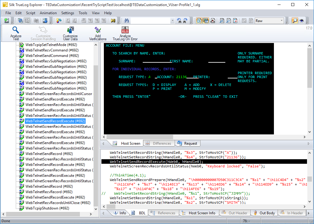 TrueLog Explorer supports the visualization of terminal emulation requests and responses in the same way that it supports the visualization