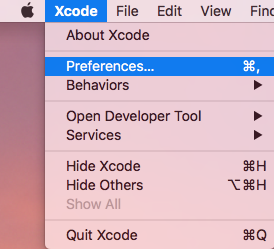 2. Select Xcode > Preferences.