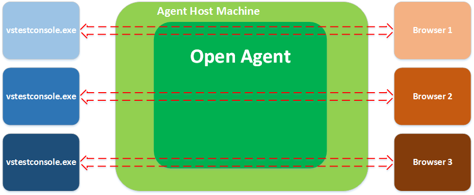 並列テストの実行それぞれが、1 個のブラウザーまたはモバイル デバイスに対して個々の vstestconsole.exe または mstest.exe を開始します。ブラウザーやモバイル デバイスを特定の vstestconsole.exe または mstest.exe と関連付けたい場合には、接続文字列を使用できます。詳細については、「モバイル デバイスの接続文字列」または「リモート デスクトップ ブラウザーの接続文字列」を参照してください。